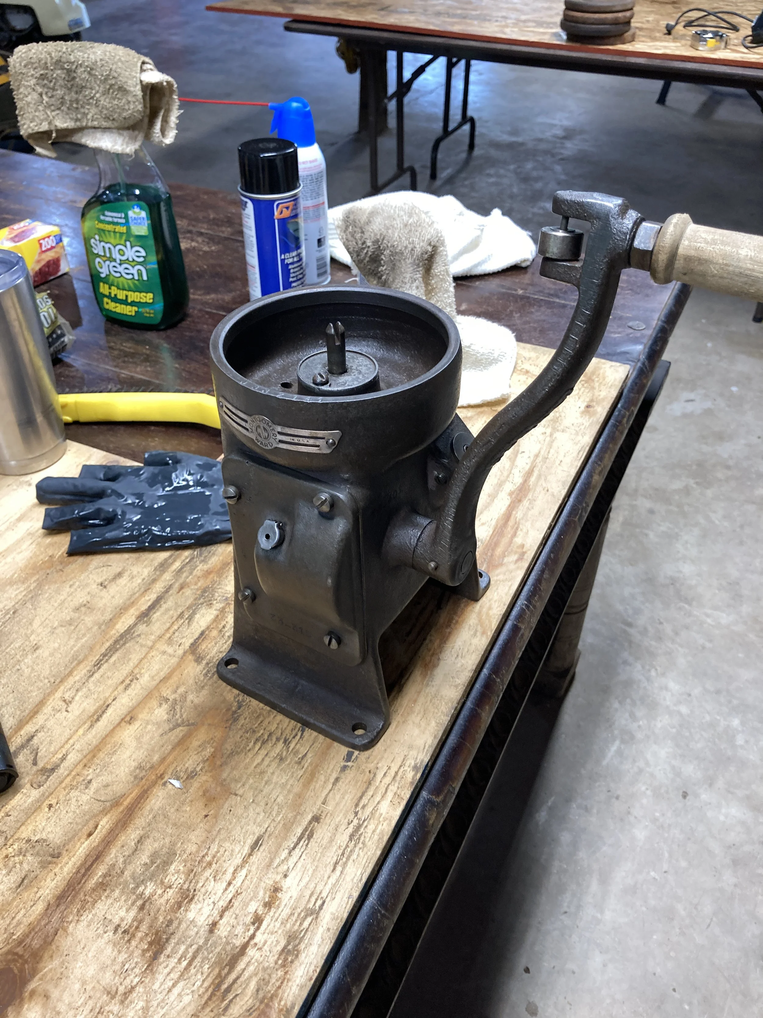 I built a wooden base to mount it on along with handles for lifting it & moving it to make it easier as it’s quite heavy due to it’s cast iron construction. They built things to last back in those days.
