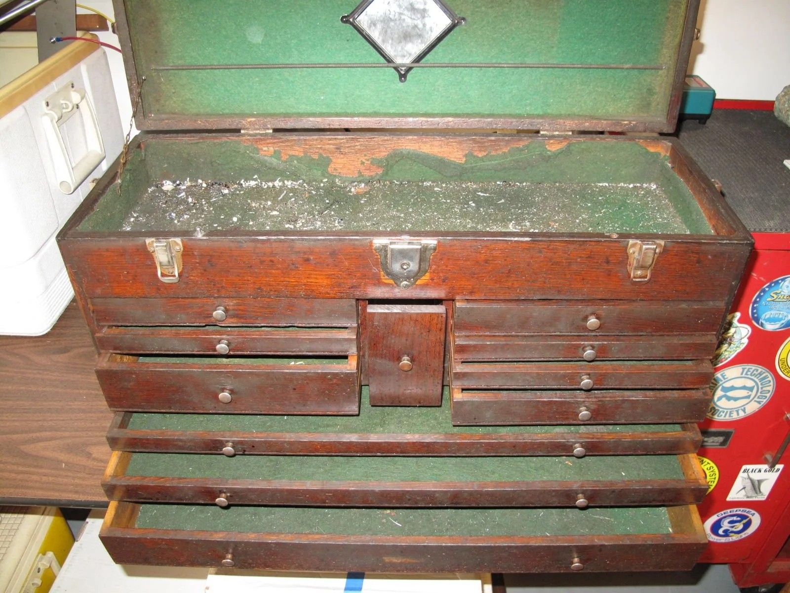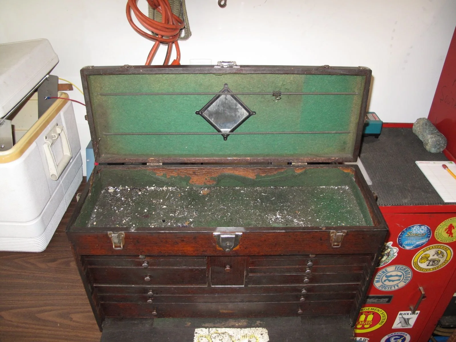 When my father retired, he gave me his tool chest. I have been wanting to restore it ever since. That was about 25 years ago. I never started to try & restore it while I was working & traveling on the road over 330 days a year as I knew I would never finish it.