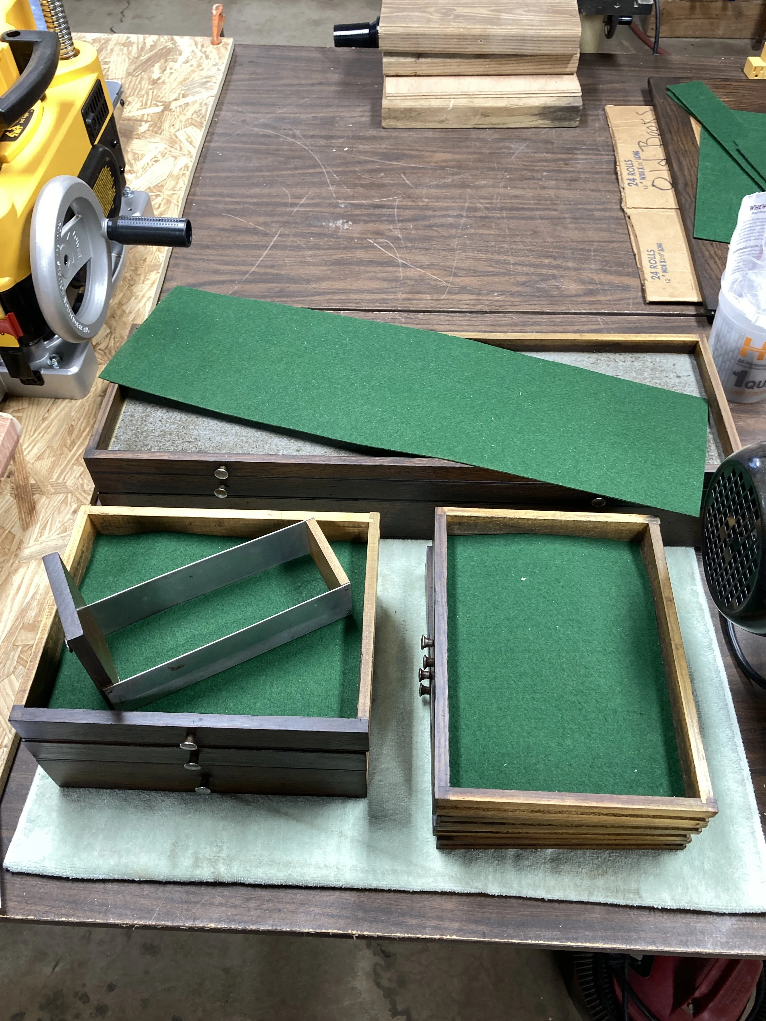 During this time when allowing the stain to dry, I measured & cut the felt for the top & drawers.