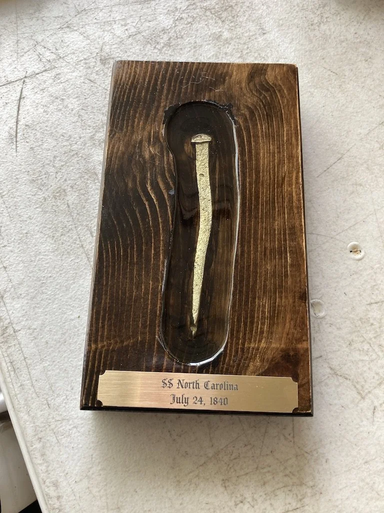 The bronze snails or spikes clean up very nicely. I decided to mount one on a picee of wood I stained & then covered with resin. I’m still working on it.